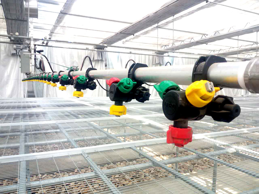 蔬菜集約化育苗裝備及技術采用配套苗床、軌道式噴灌系統(tǒng)、環(huán)流系統(tǒng)、優(yōu)質(zhì)基質(zhì)、補光系統(tǒng)等設施設備,并通過嚴格的溫濕光系統(tǒng)環(huán)境控制從而達到育苗生產(chǎn)的標準化、產(chǎn)業(yè)化生產(chǎn)。