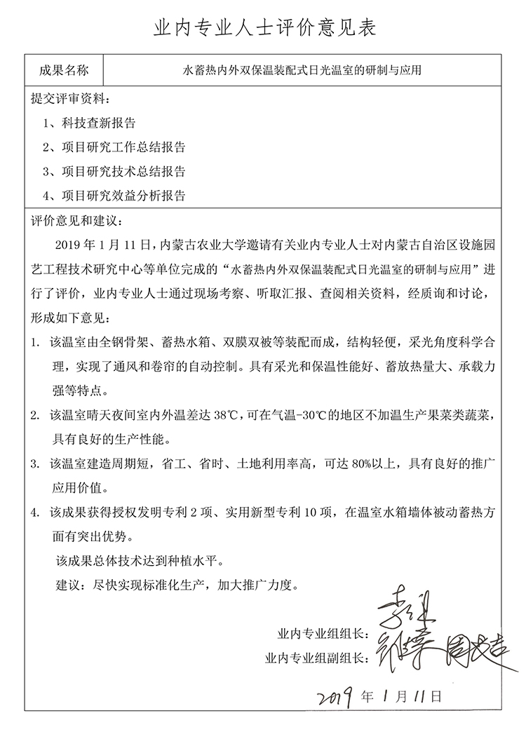 研討會(huì)期間,100多位行業(yè)同仁就內(nèi)蒙古中天科技有限公司設(shè)計(jì)建設(shè)的水蓄熱內(nèi)外雙保溫裝配式日光溫室進(jìn)行了實(shí)地考察與交流研討,一致認(rèn)為成果總體技術(shù)已具備良好的推廣價(jià)值。內(nèi)蒙古農(nóng)牧頻道、包頭新聞等媒體進(jìn)行了大量報(bào)道。