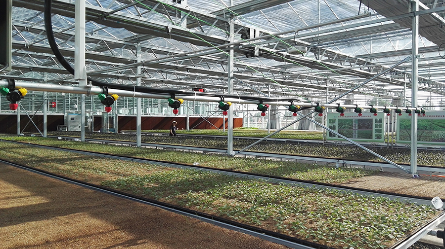 蔬菜集約化育苗裝備及技術采用配套苗床、軌道式噴灌系統、環流系統、營養基質、補光系統等設施設備,并通過嚴格的溫濕光系統環境控制從而達到育苗生產的標準化、產業化生產。