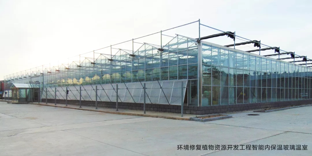 環境修復植物資源開發工程智能內保溫玻璃溫室內蒙古中天科技有限公司(高新技術企業)規劃建設,所建智能內保溫玻璃溫室2棟,每棟各2間溫室,共4間溫室。主要作物以培育花卉、蔬菜苗、水果苗為主。智能內保溫玻璃溫室總面積3427.2㎡。溫室設頂部內保溫、立面保溫系統、外遮陽系統、內遮陰系統、濕簾-風機降溫系統、天窗通風系統、供暖系統、苗床系統、軌道式噴灌系統、照明系統、補光系統等。