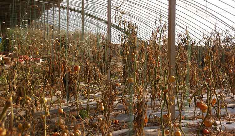 (其他普通外保溫溫室室內(nèi)溫度過低導(dǎo)致作物的根系停止生長,作物變黃枯萎,逐漸死亡)